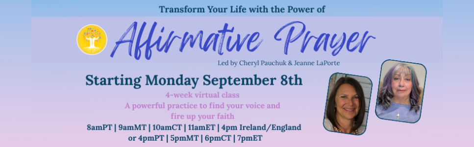 One of the greatest gifts you can give yourself is the awareness of the power of your word in all aspects of life. Affirmative prayer is a power tool for using your word wisely and supporting you in the living experience of prosperity and joyful living. Come join us for this 4-week series to learn affirmative prayer. You will have prayer partners and opportunities to practice even when the class is finished. It is time to step into a deeper consciousness of Miracles.